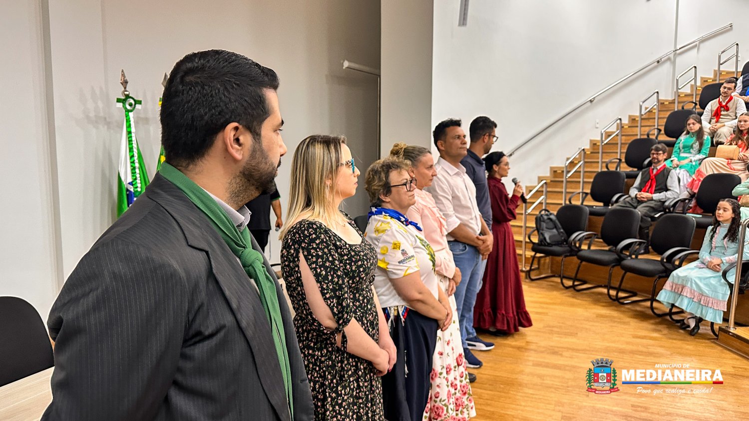 Estiveram presentes o prefeito Antonio França, o vereador Eduardo Schulz, a secretária de Desenvolvimento Econômico Marcia Hanzen, a secretária de Educação e Cultura Rosiane Tonelli, a patroa do CTG Fabiane Poletto Bersch, além da diretoria, professores, prendas e peões de todas as categorias.
