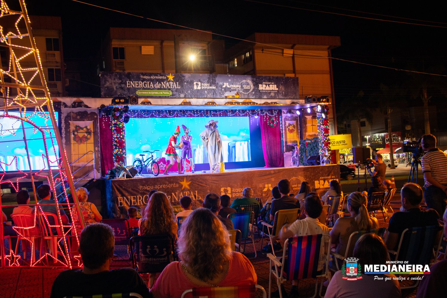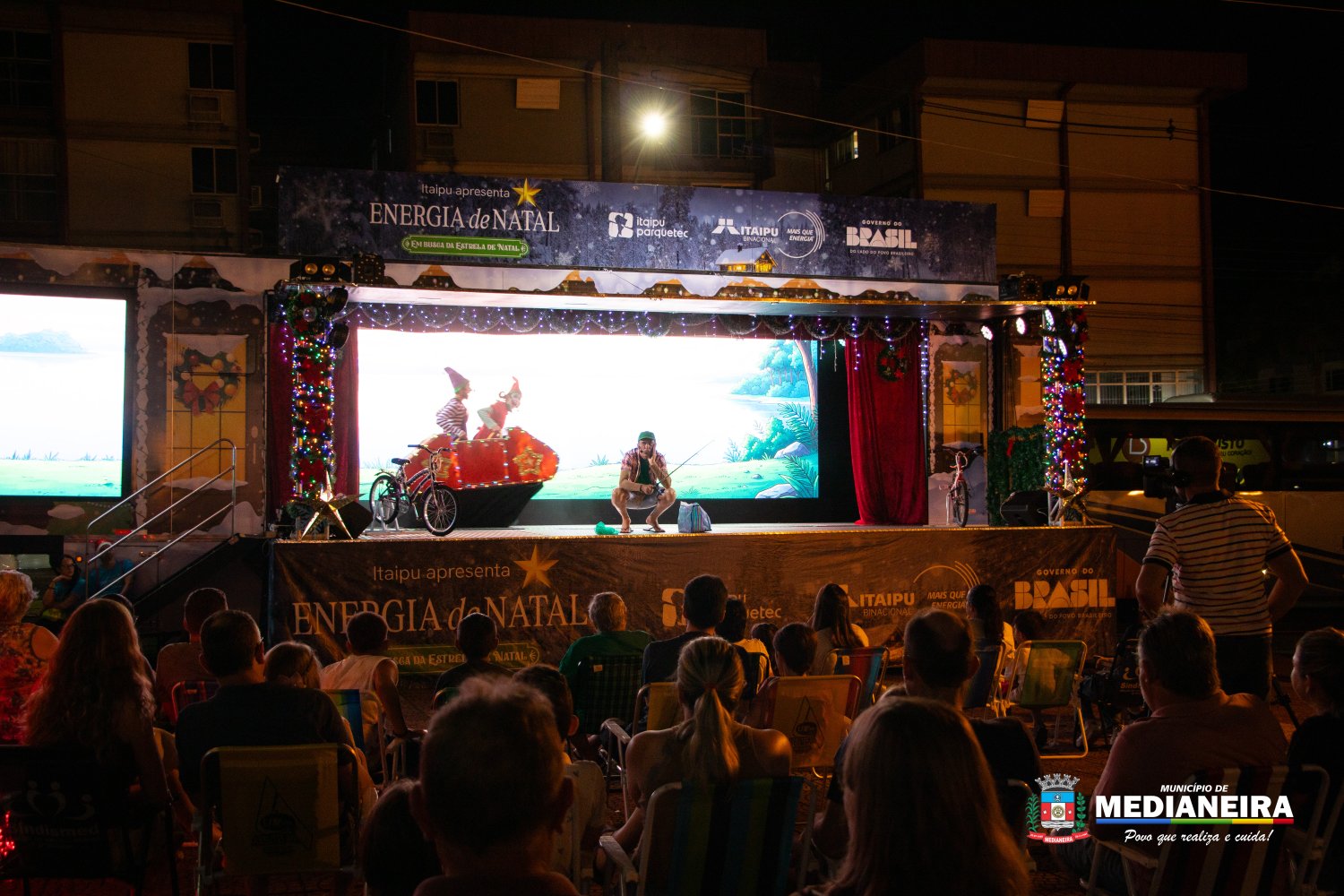 Dentro da programação do Feliz Natal Medianeira, a magia tomou conta da cidade na noite desta quinta-feira (11) com o espetáculo Energia de Natal – Em Busca da Estrela de Natal, promovido pela Itaipu Binacional e Itaipu Parquetec.
