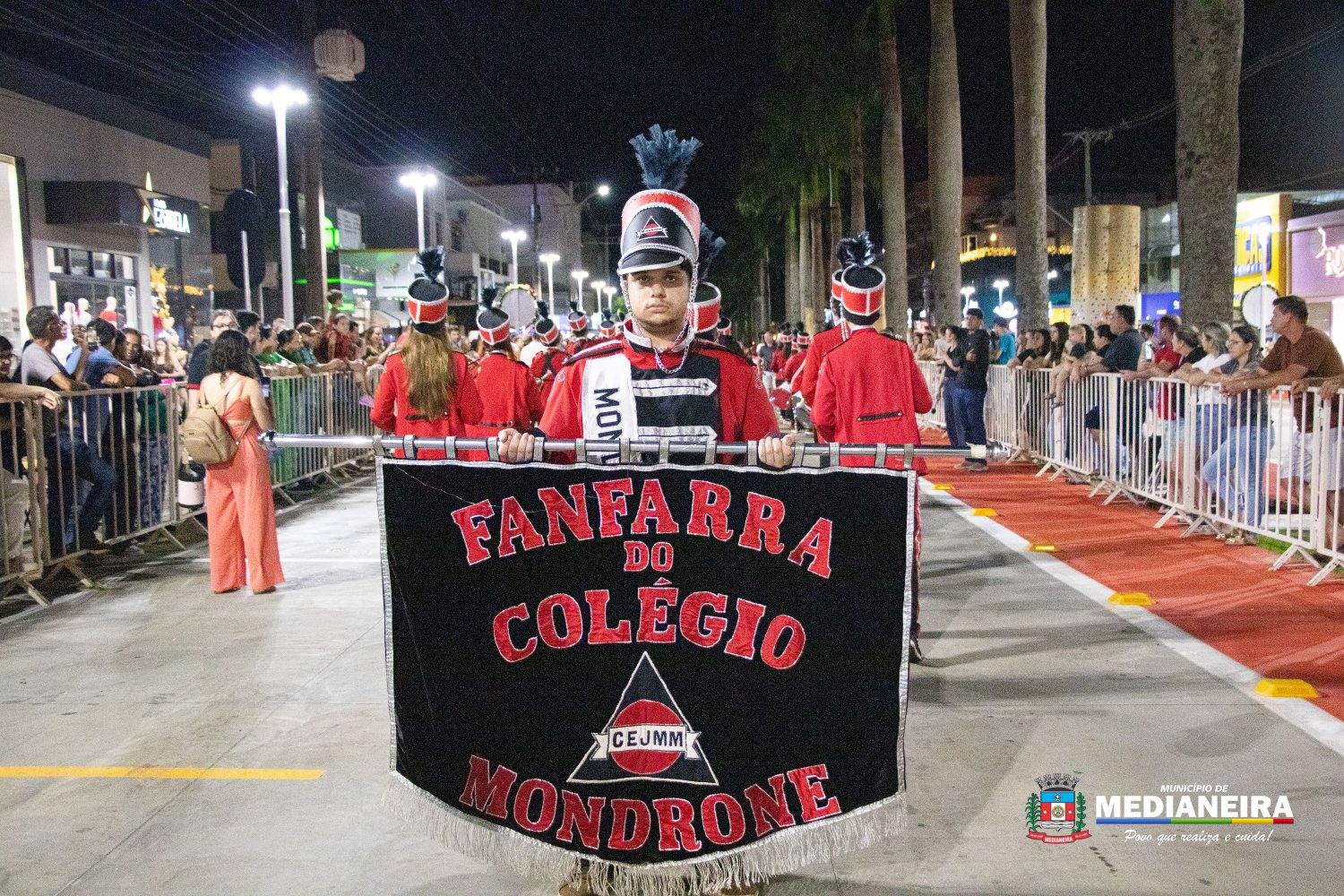 A abertura do desfile ficou por conta do Papai Noel e da Mamãe Noel do Departamento de Cultura de Medianeira, acompanhados por personagens como presentes, bonecos, fadas, duendes, bailarinas, além de Maria e José, em referência ao nascimento do Menino Jesus. A Fanfarra do Mondrone marcou o início das apresentações, dando ritmo e energia à noite.