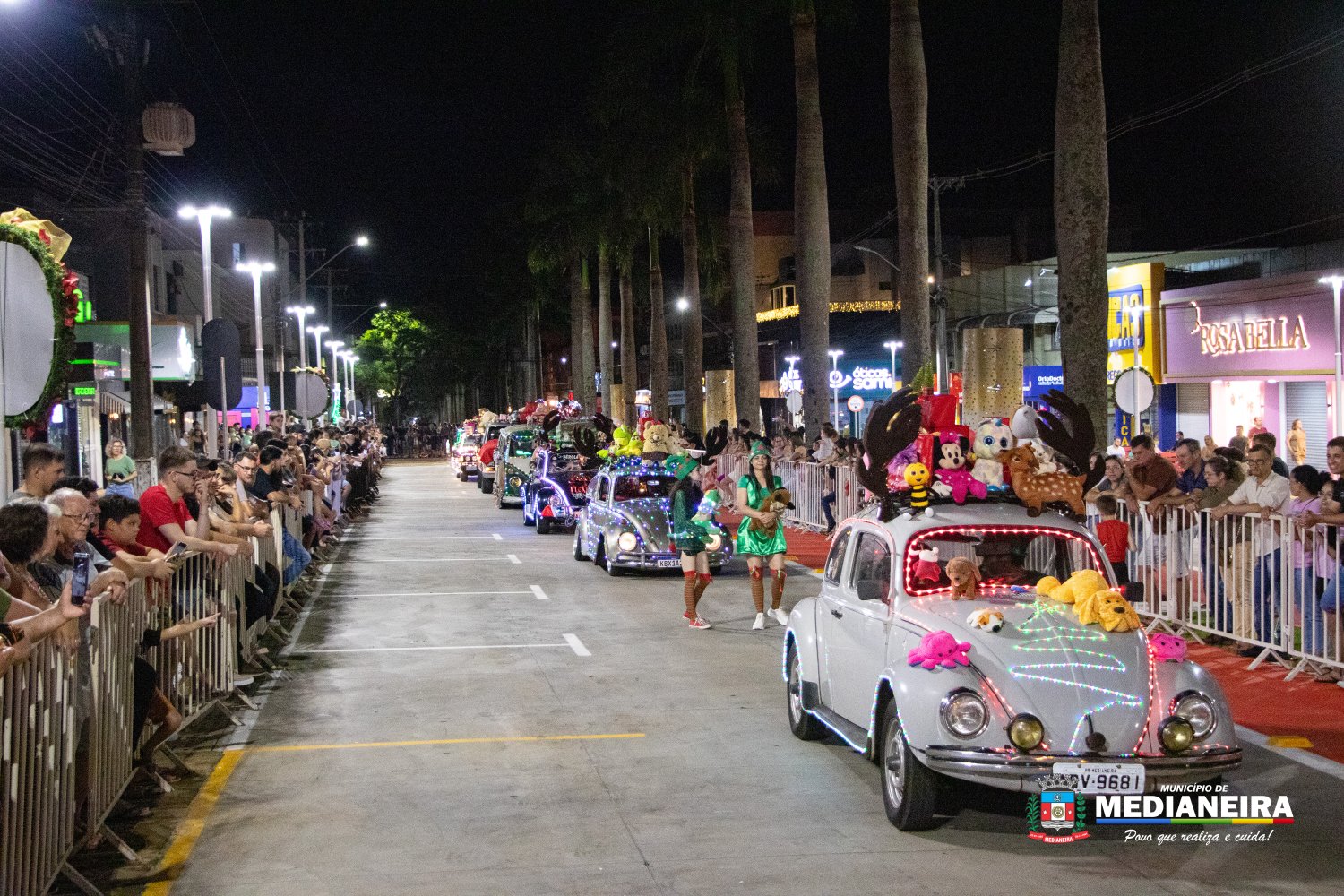 A Avenida Brasília se transformou em uma grande passarela de luzes, cores e criatividade durante a 2ª Parada de Natal de Medianeira. O desfile de carros alegóricos levou encanto natalino às ruas e reuniu um grande público na Praça Ângelo Darolt, que foi palco desse momento especial de celebração.