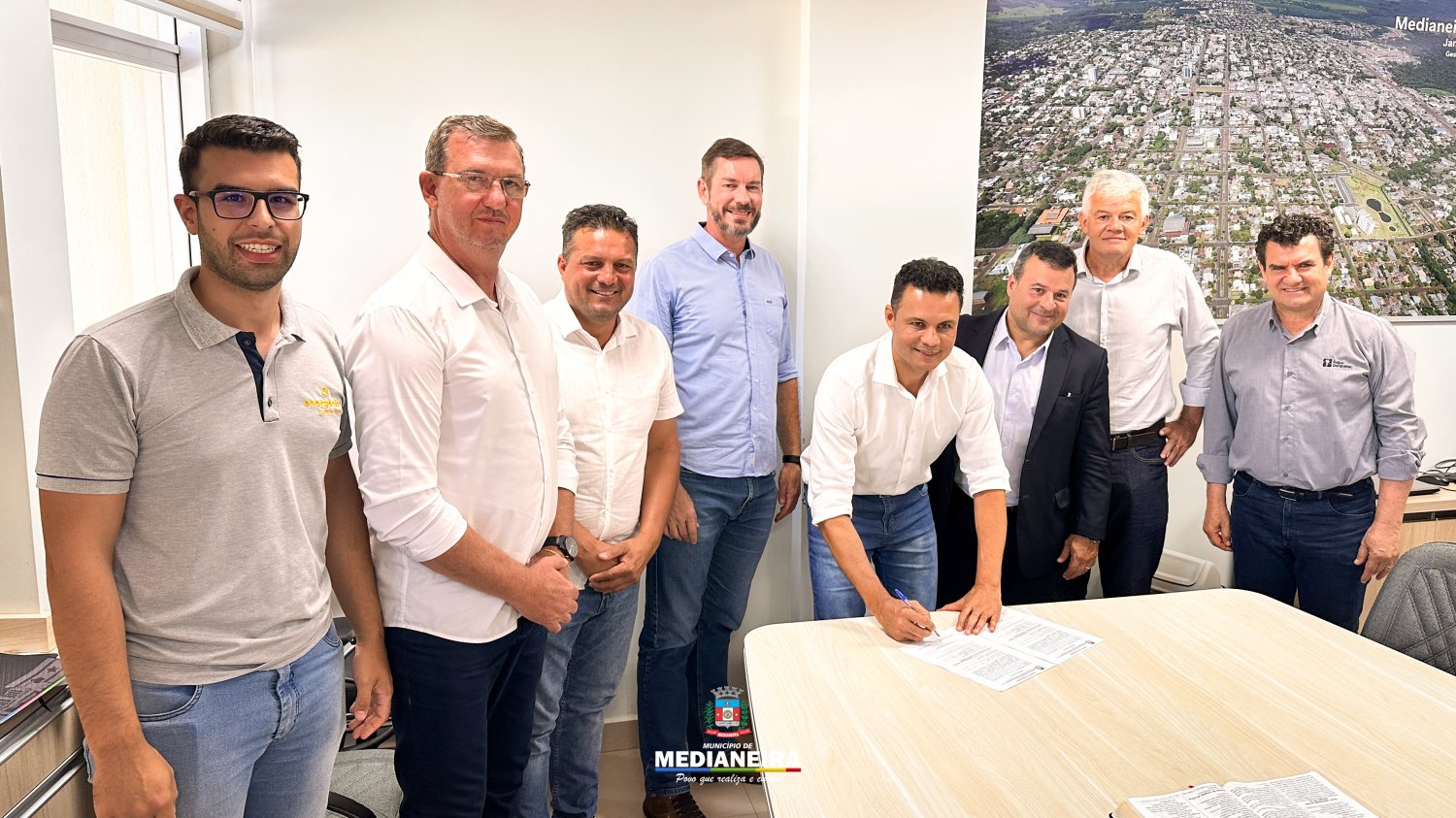 Foi assinado na manhã desta quinta-feira (08) a Ordem de Serviço para início da pavimentação asfáltica em trechos de ruas dos bairros Belo Horizonte, Cidade Alta, Condá, Frimesa, Independência, Itaipu e Nazaré.