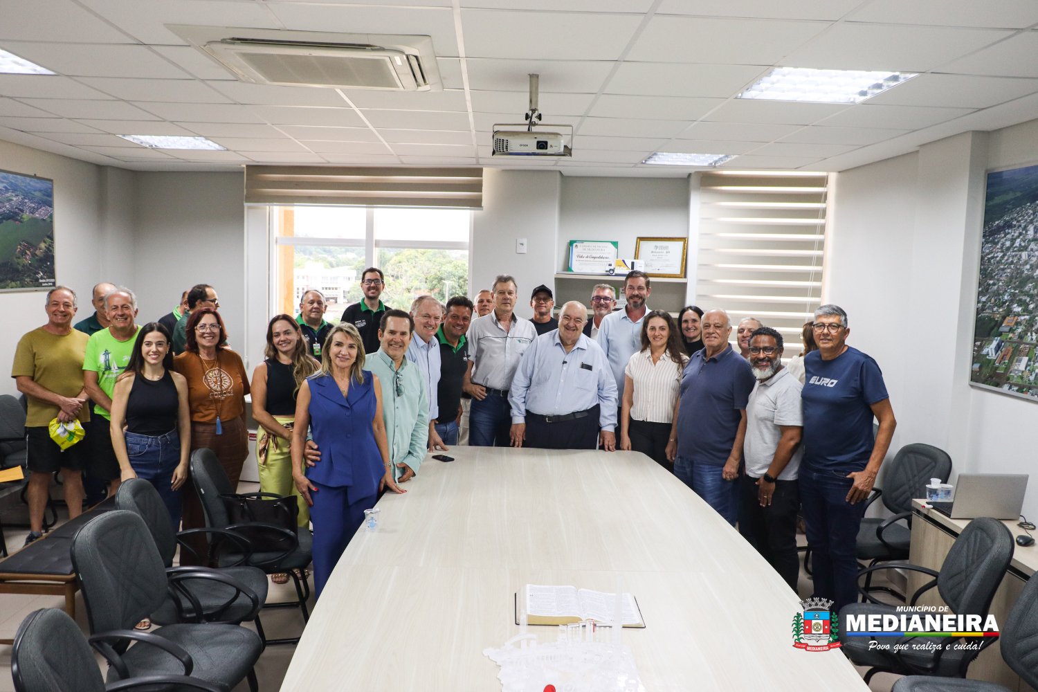A recepção aconteceu na sala de reuniões da prefeitura e contou com a presença do vice-prefeito Evandro Mees, vereadores, secretários municipais, proprietários da Aerogest, servidores e munícipes.