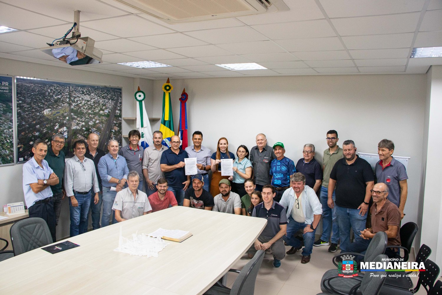 Estiveram presentes no ato o prefeito Antonio França; o presidente da Câmara, Marcos Berta; os vereadores Eduardo Schulz, Sebastião Antonio, Douglas de Almeida, Juarez Demarchi e Nelson de Oliveira; o secretário de Agricultura, Amarildo Tessaro; a secretária de Finanças, Marta Fracaro; o coordenador da comunidade Linha Alegria, Everaldo Variani; o presidente do Sindicato dos Trabalhadores Rurais de Medianeira, José Bússolo; o extensionista do IDR-PR, Alcedir Biesdorf; o presidente do diretório municipal do PT, Jeisson; o assessor do deputado federal Zeca Dirceu; além de moradores das comunidades de Linha Alegria e Linha Alto Alegria.