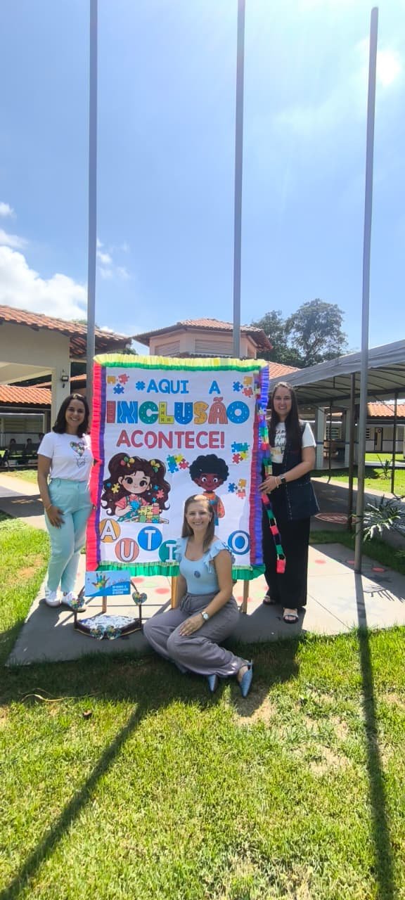 Na hora do lanche foi feita a entrega de bottons personalizados aos funcionários da escola e realizada uma conversa sobre a importância da educação inclusiva e o papel de cada um na construção de um ambiente acolhedor, respeitoso e que valorize as diferenças, garantindo o desenvolvimento e a participação de todas as crianças.